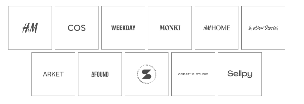 Nuestra oferta al cliente se compone principalmente de ropa, accesorios, calzado, cosméticos, textiles para el hogar y artículos para el hogar vendidos a través de nuestras marcas exclusivas: H&M , COS , Weekday , Monki , H&M HOME , & Other Stories , ARKET y Afound . El grupo también incluye proyectos comerciales, que tienen la misma misión: crear negocios escalables, interactuar con nuestros clientes y crear valor para ellos, y explorar nuevas fuentes de ingresos. Los ejemplos incluyen Singular Society y nuestra iniciativa B2B Creator Studio .