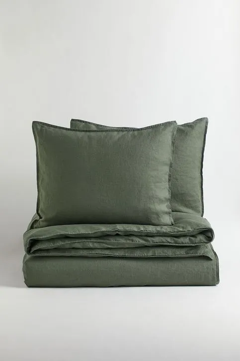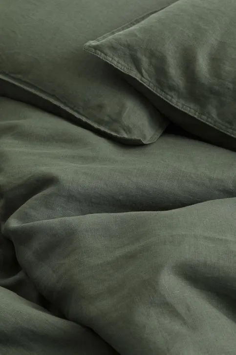 Conjunto de funda de duvet de 2 plazas en lino lavado para una suavidad y descanso nocturno óptimos. Cierre mediante botones de presión ocultos de metal en la parte inferior. Número de hilos 104. Dos fundas de almohada con abertura tipo sobre. El lino es un tejido elegante y resistente que, cuidado de manera adecuada, ofrece una suavidad que mejora con cada lavado. Asimismo, absorbe la humedad y aporta una agradable sensación de frescura. De ahí que sea una excelente elección para tu ropa de cama si no deseas pasar calor cuando duermes.