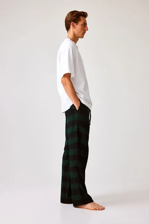Pantalón de pijama a cuadros en franela de algodón. Modelo de corte relajado con cintura elástica y cordón de ajuste, bolsillos en las costuras laterales y piernas rectas.