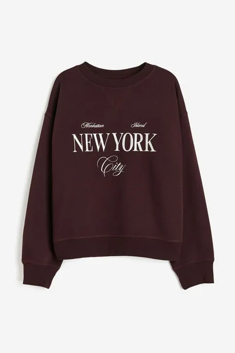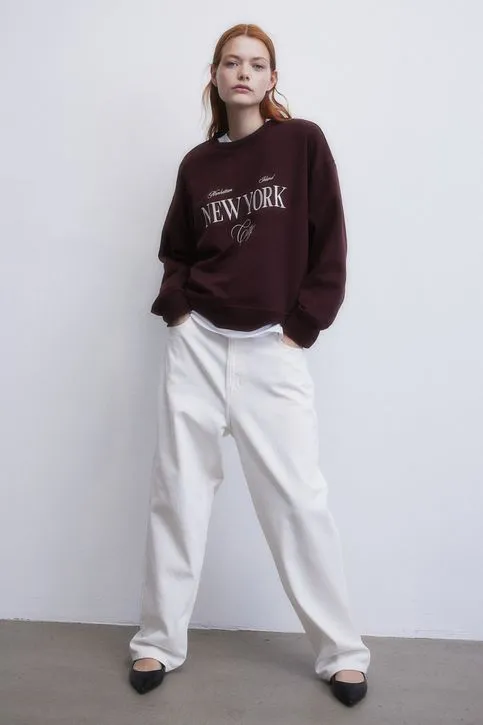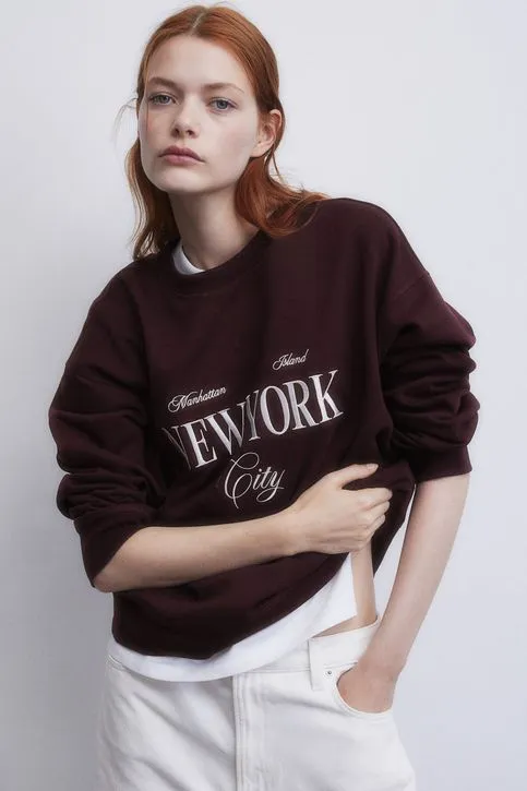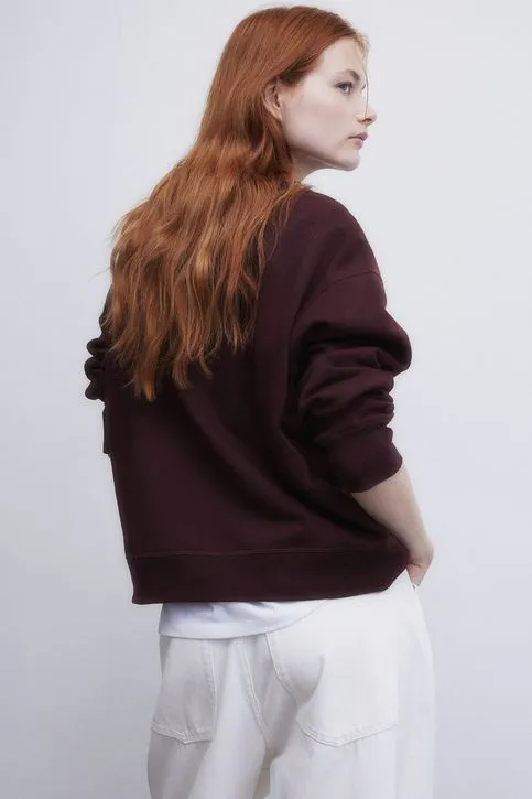 Polera en mezcla de algodón suave con cuello redondo y hombros caídos. Cuello, puños y bajo en punto elástico acanalado. Interior cepillado suave.