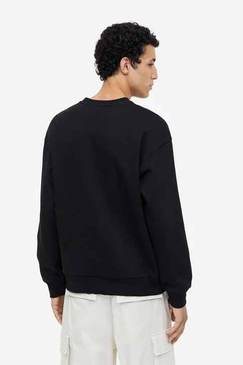 Polera en tejido de mezcla de algodón de peso medio con interior cepillado suave. Modelo con hombros caídos y remate acanalado en cuello, puños y bajo. Corte holgado para una silueta amplia pero no oversize.